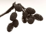 The fruit is clusters of brownish cones which are quite small (up to 2 cm long). They remain on the trees over the winter and contain oval winged nutlets. About 2000 seeds are normally produced by the cones which are normally spread by the wind but also by the water and birds. The seeds have a viability of about 45%. Seeds are normally dispersed between the months of October and March.