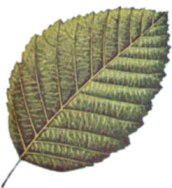 Alternate, deciduous (fall off the limb in the autumn), broadly elliptic, and sharp-pointed at the base and tip. The leaf top is dull green and smooth, and the underside is golden-colored and hairy. The leaf margin is revolute, the very edge being curled under, a diagnostic character which distinguishes it from all other alders. The leaf turns yellow in autumn before it falls from the tree.